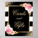 Avise aos seus hóspedes onde largar suas cartas e presentes com esta elegante placa de casamento listrada a preto e branco com flores cor d'água pinceladas rosa e verde dourado. Itens correspondentes disponíveis para complementar este cartão floral vintage e sinal de presentes.