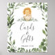 Dê aos seus hóspedes uma direção encantadora com nossos cartões dinossauros e sinal de presentes, com cores aquáticas verde eucalipto garland e uma elegante fonte de estilo manuscrito.