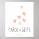 Esta aquarela corta as cartas de chá de fraldas e o sinal de presentes é perfeito para um simples chá de fraldas ou borrão de bebês. O doce design apresenta corações pastéis de aquarelas bonitinhas em cor rosa-coral, rosa-pincel, amarelo e laranja-pêssego.