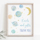 Este adorável design apresenta planetas pintados manualmente com aquarelas com estrelas falsas de folha de ouro.