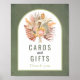 Folhas de palma secas tropicais, erva-palmeira-palmeira e flores de protea cartões botânicos verdes e presentes poster de casamento. Este bonito design de casamento apresenta um arco sobre fundo manchado verde. No quadro está o seu texto, um buquê de folhas de palma secas, flores de proteína e grama-pampas.