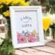 Guie seus hóspedes com estilo usando nossos Cartões de Flores Tropicais Elegantes e Sinal de presentes. Com flores tropicais vibrantes amarelas, roxas e cor-de-rosa, este design adiciona um toque alegre e sofisticado à sua celebração. Perfeito para casamentos, chás de panela ou eventos tropicais, ele direciona os hóspedes sem esforço enquanto complementa sua decoração. Os sotaques florais ousados e a tipografia elegante tornam-na funcional e visualmente atordoante. Uma bela adição à sua mesa de presente que melhora a atmosfera festiva!