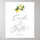Este moderno cartão de jardim de limão e sinal de presentes é perfeito para um primavera ou um casamento ou chá de panela de verão. O design mediterrânico rústico apresenta limões aquosos brilhantes e bonitos com flores brancas boêmicas e folhas verdes elegantes. A linha de texto na parte inferior da placa pode ser personalizada com a data, os nomes da noiva e do noivo, ou uma mensagem curta como "Obrigado". Este sinal pode ser usado para um casamento ou qualquer evento ou festa.