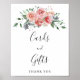 "cartões e presentes" elegante sinal de casamento floral. Possui letra caligráfica de estilo de letra de letras manuais e disposição floral de rosa de aquarela.