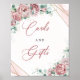 Sinal de Cartões e Presentes com estampa boho blush floral dourado e eucalipto para Chá de Noiva,