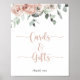 Este clássico cartaz de cartões florais de rosa em cor rosa poeirento e presentes é perfeito para um casamento rústico ou chá de noiva. O design apresenta elegantes rosas em cor rosa poeirento pintadas à aguarela e folhagens verdes, reunidas de forma organizada em lindos buquês.