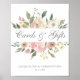 Um buquê elegante de peônias rosa água-marinha e rosas creme marfim emoldura este pôster de casamento de Cartões e Presentes. Ramalhetes botânicos de folhas de eucalipto verde-sage adornam o meio da matriz de flores de pêssego que rodeiam a bela e chic escrita, lembrando aos convidados de deixar seus cartões ou presentes na mesa.