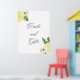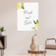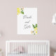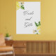 Receba seus convidados com este elegante sinal de chuveiro de noiva mediterrâneo, apresentando limões de aquarela, flores azuis e sotaques de azulejos pintados à mão. Perfeito para uma festa de jardim de verão ou celebração inspirada na Itália. Personalize-o com o nome da noiva e a data do evento para um toque único.