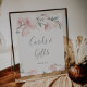 Este sinal de cartões e presentes de flor de cerejeira da primavera é perfeito para um casamento moderno ou chá de noiva. O design floral oriental apresenta um ramo caprichoso de flor de cerejeira em rosa água-marinha e folhas verdes com um estilo japonês elegante. A linha de texto na parte inferior do sinal pode ser personalizada com a data, os nomes da noiva e do noivo, ou uma mensagem curta como "Obrigado". Este sinal pode ser usado para um casamento ou qualquer evento ou festa.