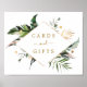 Este cartaz de casamento e dons apresenta folhagem tropical verde-aquarela, folhas de palmeiras, folhas de bananeiras e folhas de ouro falsas com uma falsa estrutura em forma de diamante-ouro. É perfeito para um casamento tropical, praia ou destino.