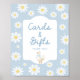 Defina um tom lúdico com este ganso bobo azul, cartões de margarida e sinal de presentes — perfeito para um tema de chá de fraldas retrô ou de festa engraçada.