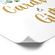 Este cartaz de mesa chic apresenta um doce elefante bebê sentado em uma lua crescente verde e floral azul pastel. Itens correspondentes disponíveis no repositório! c) O Feliz Cat Studio