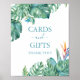 Adicione um toque de charme da ilha à sua decoração de recepção de casamento com este elegante cartaz de mesa de presente, projetado para coordenar com a minha coleção de artigos de papelaria sobre temas de casamento tropical. Apresentando uma vibrante borda aquarela de folhas de palma monstera e flores tropicais, este cartão e sinal é um na moda e um complemento funcional para o seu evento. Perfeito para um casamento na praia na Flórida, celebração de destino, chá de panela ou chá de casais, este sinal ajuda a guiar os convidados enquanto melhora suas ideias gerais de decoração de casamento. Explore mais peças para seu casamento na praia em www.zazzle.com/dotellabelle Design por Victoria Grigaliunas do Do Tell A Belle.