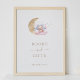 Este cartaz de livros e presentes bonitos mostra uma ilustração aquarela de um urso bebê sentado sobre uma nuvem rosa e azul com lua de ouro e cercado por estrelas. Personalize-os com seus detalhes e utilize as ferramentas de edição para outros ajustes, como tamanho da fonte, posicionamento e cor.