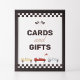 Informe aos seus convidados do partido onde deixar cartões e presentes (ou personalizar o texto) com este símbolo temático de carro de corrida, projetado para corresponder à nossa coleção de Partido Racecar.