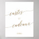 Este elegante sinal de cartes et cadeaux em caligrafia dourada é perfeito para um casamento simples ou chá de noiva.