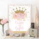 Este design apresenta uma coroa real brilhante em uma brilhante brilha de ouro decorada com peonias embebidas em aquarela e borrifadas de confete. Personalize o sinal com qualquer texto que você quiser!