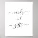 Poster de Sinal de Casamento Moderno com design simples e na moda com "cartas e presentes" em uma tipografia elegante com hastes. Todos os elementos de design estão em preto-e-branco e podem ser alterados na ferramenta de edição de design. Este símbolo de casamento de estilo minimalista é excelente para qualquer estilo de casamento, casual ou formal.
