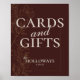 Adicione um toque refinado ao seu casamento com este Cartaz de Casamento Cartões e Presentes Mousse Marrom. Com uma tipografia minimalista moderna em um tom terroso quente, este cartaz guia os convidados até a mesa de presentes com elegância discreta. Um complemento perfeito para temas de casamento inspirados na natureza ou neutros, combina-se perfeitamente com a sua decoração, oferecendo beleza funcional.