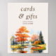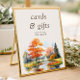 Sinal de Fall Lake para suas cartas e mesa de presentes no seu casamento ou chá de panela. País russo, design cênico de aquarela com palco de lakeside apresentando áreas de floresta com vegetação e árvores bonitas com folhagem de outono. Fácil de personalizar com seu sentimento e nomes personalizados. Se quiser alterar a cor da borda de fundo, clique para personalizar com a ferramenta design. Se você quiser combinar produtos, por favor, navegue na minha coleção Fall Lake.