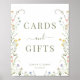Cartões de casamento rústicos e delicados e elegantes e cartazes de mesa com coroa colorida de flores silvestres entrelaçada com folhas verdes e flores de campo. Perfeito para celebrações clássicas de primavera/casamento de verão.