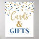 Cartões e presentes, poster de sinal de chá de fraldas de casamento ou de em azul escuro de marinho e padrão de confetti de ouro com letra de estilo manuscrita.
