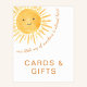 Este Sinal de Chá de fraldas Cartões e Ofertas apresenta uma aquarela amarela sorrindo sol e uma tipografia de na moda. Original Watercolor © Michele Davies.