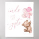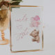 Sinal de texto personalizado com um ursinho de pelúcia segurando balões rosa. Coleção correspondente no compro Adore Paper Co. Zazzle.