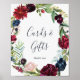 Este cartaz de coroa e sinal de presentes no jardim do outono é perfeito para um casamento outono ou chá de panela. O design floral apresenta flores cor-de-água, flores, cor-de-rosa, vermelha, marinho e borrifadas, brilhantes, e folhas verdes organizadas em uma ferida de queda viva. A linha de texto na parte inferior da placa pode ser personalizada com a data, os nomes da noiva e do noivo, ou uma mensagem curta como "Obrigado". Este sinal pode ser usado para um casamento ou qualquer evento ou festa.