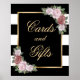 Avise aos seus hóspedes onde largar suas cartas e presentes com este elegante cartaz de casamento listrado preto e branco com flores roxas cor-de-rosa e verde. Itens correspondentes disponíveis para complementar este cartão floral e sinal de presentes.
