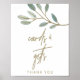 Este cartão de eucalipto veado de ouro e sinal de presentes é perfeito para um casamento ou chá de panela elegante. A design simples e delicada apresenta uma falso brilho dourado que ensola os ramos das folhas verdes de azeitona. A linha de texto na parte inferior da placa pode ser personalizada com a data, os nomes da noiva e do noivo, ou uma mensagem curta como "Obrigado". Este sinal pode ser usado para um casamento ou qualquer evento ou festa.