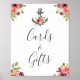 Poster Cartões Florais e Sinal de Presente de Ângulo Náut