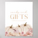 Destaque o seu tema na mesa de exibição do chá de bebê com o nosso letreiro 'cartões e presentes' totalmente personalizável. Este design apresenta abóboras rosa e marfim em aquarela, grama de pampas e botânicos floridos. Personalize este design para atender às suas necessidades com facilidade! Este design está disponível para impressão E download digital instantâneo!
