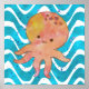 Um polvo de desenho laranja giro. Design de cor de água azul e laranja. Posters para bebês animais. Ideia de presente para crianças.