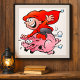 Ilumine qualquer lugar com esta poster com um gnomo alegre voando sobre um porco. Este trabalho de arte de desenho animado divertido e imaginativo adiciona um toque lúdico a quartos, salas de jogos, escritórios residenciais ou espaços criativos. Uma escolha perfeita de decoração de parede para fãs de fantasia, humor e personagens esquisitas.