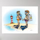 Cartoon; als je op duikvakantie gaat moet je wel de juiste spullen meenemen. En je neemt ook beter geen bierdrinkende Belg mee.