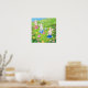 Poster Cartoon Páscoa escondendo ovos em um jardim