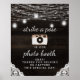 Madeira marrom-escura-escura-escura de Oak Ridge, Jars Mason cintilante e Design de Luzes de Cordas Brilhantes com fios brilhantes de luzes e frascos balançando em uma textura rica em madeira profunda com sotaques brancos. Com Fontes Modernas De Script De Tipografia. Um design de estilo fazendeiro russo elegante do campo - Personalizado Golpe de Casamento um Sinal de Foto Booth com uma câmera vintage de moda! Veja meu compro para ver a suíte de casamento inteira para este design!