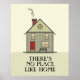 A impressão de sentimento da citação "Não há lugar como o lar" é um design único perfeito para sua casa. A imagem retrata uma adorável casa de dois andares com porta vermelha e chaminé vermelha. Há até um banco na frente do alpendre e uma nuvem de fumaça saindo da chaminé.