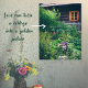 Poster com fotografia de um jardim de verão pacífico e uma acolhedora casa de madeira para amantes da natureza e entusiastas da jardinagem. Adicione um toque de charme do país ao seu interior! presente de excelente para Dia de os namorados de Santo ou outras ocasiões especiais (Dia de as mães, aniversário, aniversário). Pode eliminar o texto "O amor pode transformar uma casa de cabra num palácio de ouros" ou substituir pelo seu próprio texto