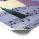 Polka roxa dopada fantasma casa de cogumelos com posto de lâmpada, um gato, uma lua crescente, uma partitura musical, e um pássaro voador. Uplifting e brincalhão. 30,48cm x 40,64cm