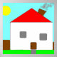 Casa separada em um dia ensolarado, arte infantil, pintura digital