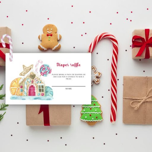 Casa de pão de gengibre com aquarela. Festa de Natal de chá de fraldas de convite. Decorar a casa do pão de gengibre com doces de Natal, cana-de-açúcar, fatia de laranja e biscoitos de pão de gengibre. Itens correspondentes disponíveis.
