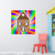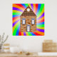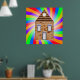 Uma casa de tijolos cercada por cores muito coloridas do arco-íris. Esta design parece realmente eficaz nestes Poster