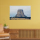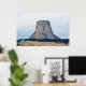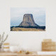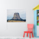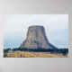 Uma fotografia de uma bunda lactolítica conhecida como Monumento Nacional da Torre Devils, torcendo sobre a paisagem do campo de Wyoming, um dia de Verão. Imagem Copyright ©2018 Kimberly J Tilley.