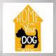 Cartão de poster de tipografia desenhado à mão ou convite para impressão com silhueta de casa e cão. "Lar É Onde Está O Seu Cachorro", escrevendo a citação. | Bigstock® - Todos os direitos reservados.