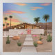 Uma ilustração digital original de Noël Snow. A reinterpretação deste artista foi inspirada pelo design arquitetônico de William Krisel em parceria com a Empresa de Construção Alexander. O sol se põe atrás das montanhas de um médio de Palm do século Primavera moderno "Casa de Alexander", mostrando um belo céu multicolor do deserto. Luzes redondas retrorreflectoras à dentro da casa dão um brilho sutil enquanto as portas corais cor-de-rosa acolhedoras enfrentam um gramado tolerante à seca decorado com chocantes flamingos de jardim rosa.