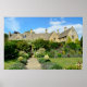 Poster de uma mansão, uma grande casa inglesa, com um jardim floral e um caminho em Chipping Campden, na região de Cotswolds, Inglaterra, Reino Unido.