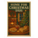 Design de poster de natal vintage,, 1950, estilo de ilustração retrô, sala de estar da família decorada para as férias, lareira brilhante, árvore de Natal decorada com ornamentos e luzes