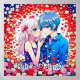 Casal de anime bonito rodeado por flores coloridas. As cores utilizadas são vermelho, branco e azul, principalmente com um pouco de roxo e rosa. . Fofo para Dia de os namorados ou aniversário ou qualquer ocasião romântica.